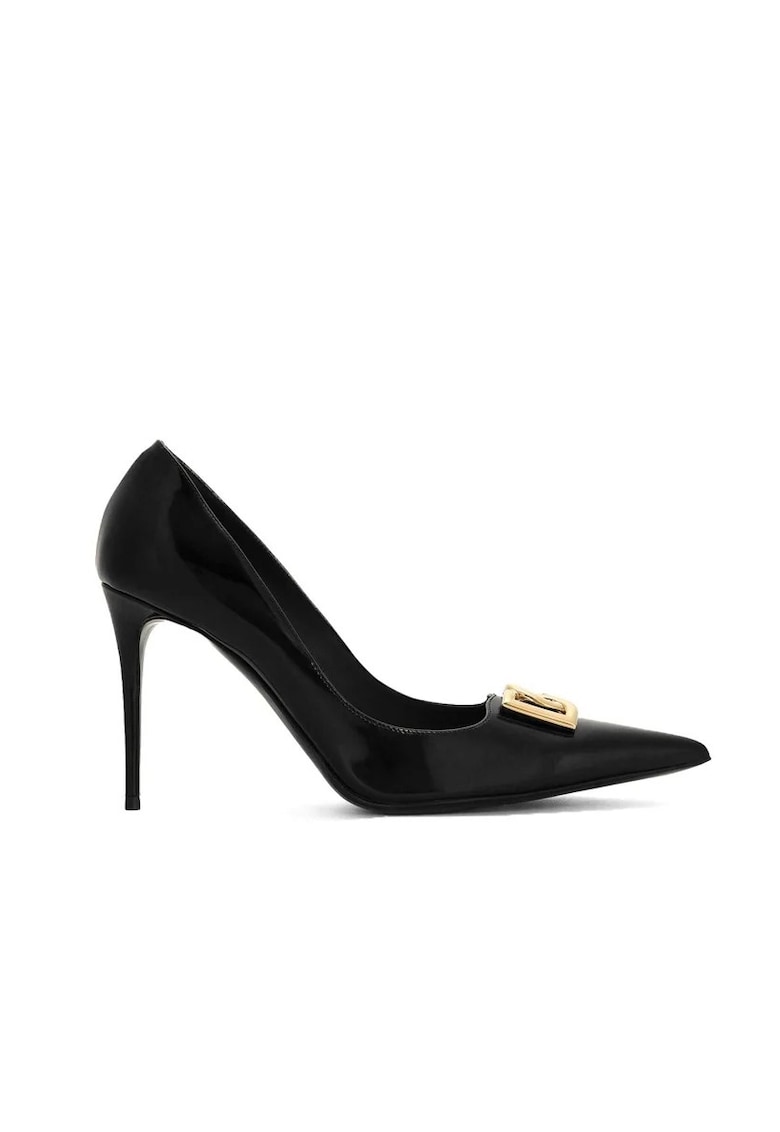 Caracteristici Tip: cu toc Material: piele lacuita Culoare: negru Imprimeu: logo Stil: elegant Varf: ascutit Sistem inchidere: fara inchidere Compozitie Partea superioara: piele naturala Material interior: piele Material talpa: material de inalta calitate