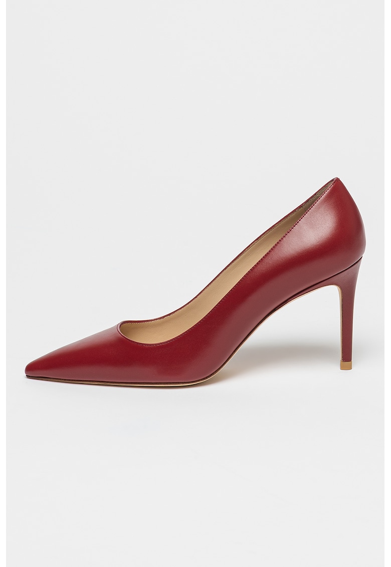Caracteristici Tip: cu toc Material: piele naturala Culoare: visiniu Imprimeu: uni Stil: elegant Varf: ascutit Tip toc: stiletto Sistem inchidere: fara inchidere Compozitie Partea superioara: piele Material interior: piele Material talpa: piele Dimensiuni Inaltime toc: 9 cm