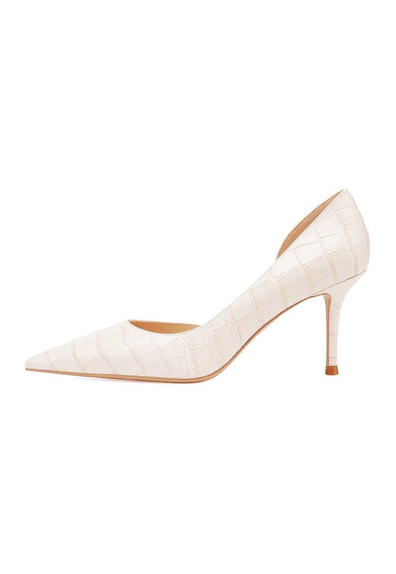 Caracteristici Tip: cu toc Material: piele naturala Culoare: alb fildes Imprimeu: uni Stil: elegant Varf: ascutit Tip toc: clasic Sistem inchidere: fara inchidere Compozitie Partea superioara: piele Material interior: piele Material talpa: alte materiale Dimensiuni Inaltime toc: 8 cm