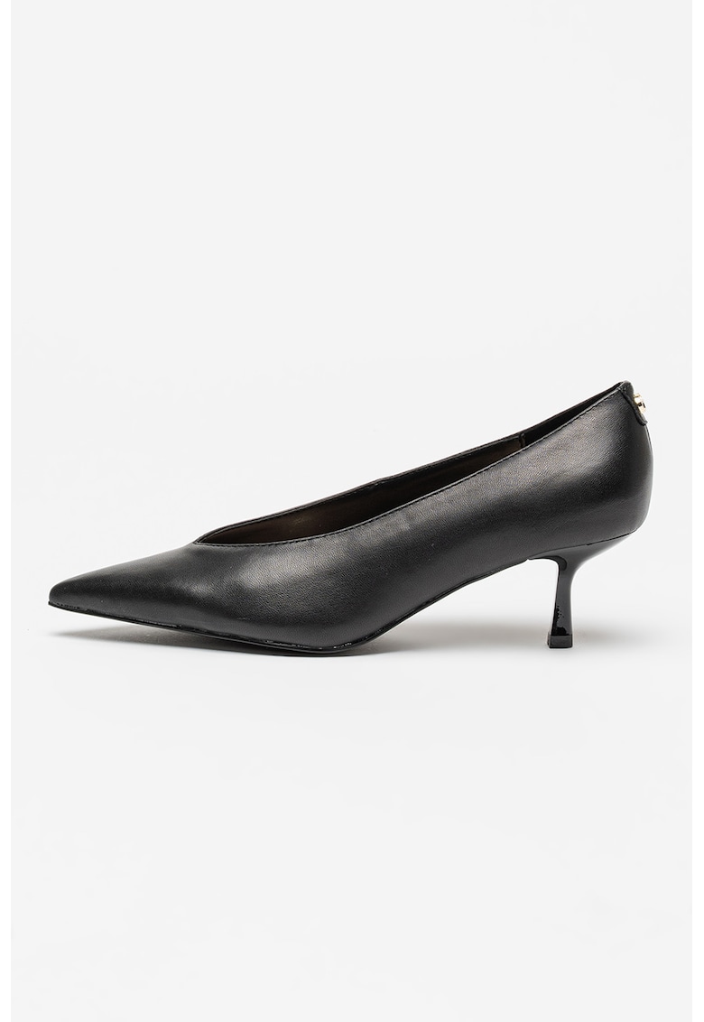 Caracteristici Tip: cu toc Material: piele naturala Culoare: negru Imprimeu: uni Stil: elegant Varf: ascutit Tip toc: stiletto Compozitie Partea superioara: piele naturala Material interior: alte materiale Material talpa: alte materiale Dimensiuni Inaltime toc: 4.5 cm