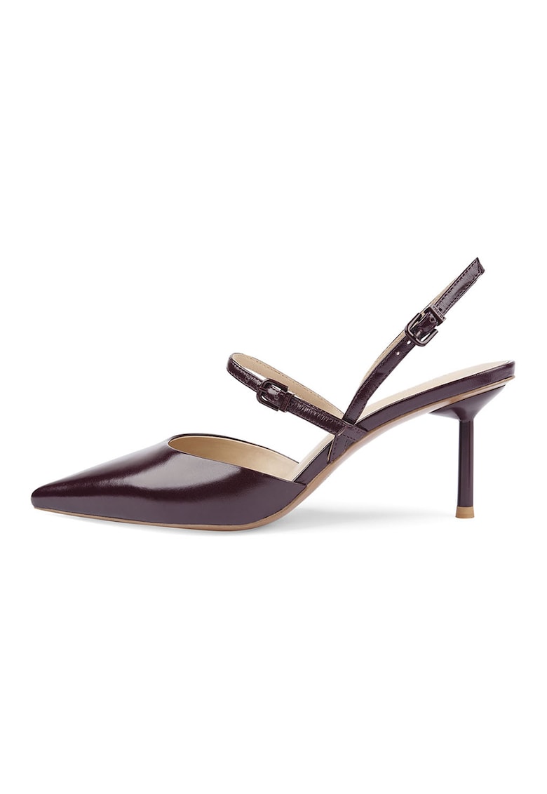 Caracteristici Tip: cu toc Material: piele naturala Culoare: visiniu Imprimeu: uni Stil: casual Varf: ascutit Tip toc: stiletto Sistem inchidere: catarama Compozitie Partea superioara: piele Material interior: piele Material talpa: alte materiale Dimensiuni Inaltime toc: 9 cm