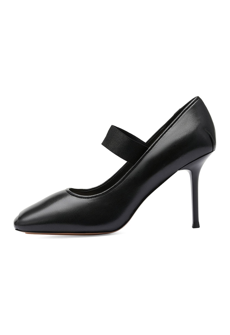 Caracteristici Tip: cu toc Material: piele naturala Culoare: negru Imprimeu: uni Stil: elegant Varf: patrat Tip toc: stiletto Sistem inchidere: fara inchidere Compozitie Partea superioara: piele Material interior: piele Material talpa: alte materiale Dimensiuni Inaltime toc: 9 cm