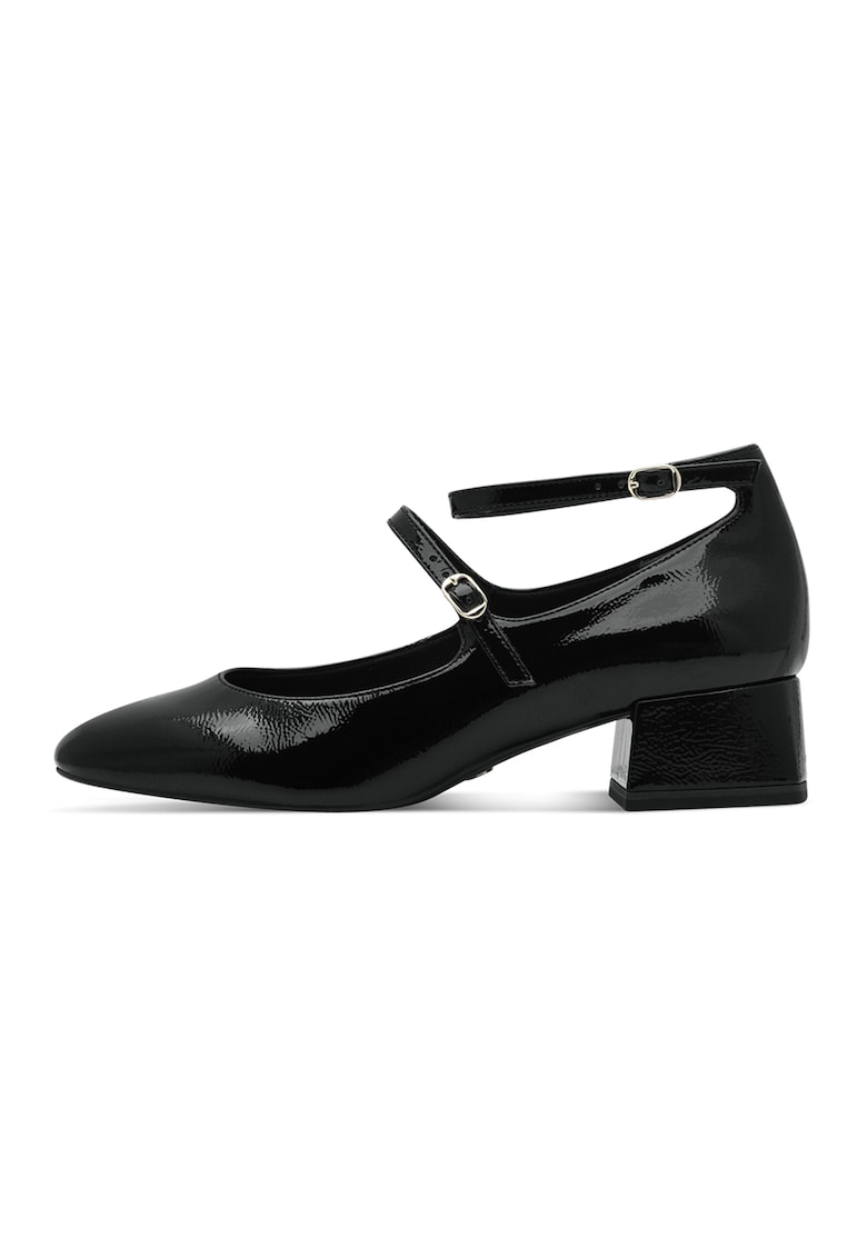 Caracteristici Tip: cu toc Material: piele ecologica Culoare: negru Stil: elegant Varf: rotund Tip toc: masiv Sistem inchidere: catarama Compozitie Partea superioara: alte materiale Material interior: alte materiale