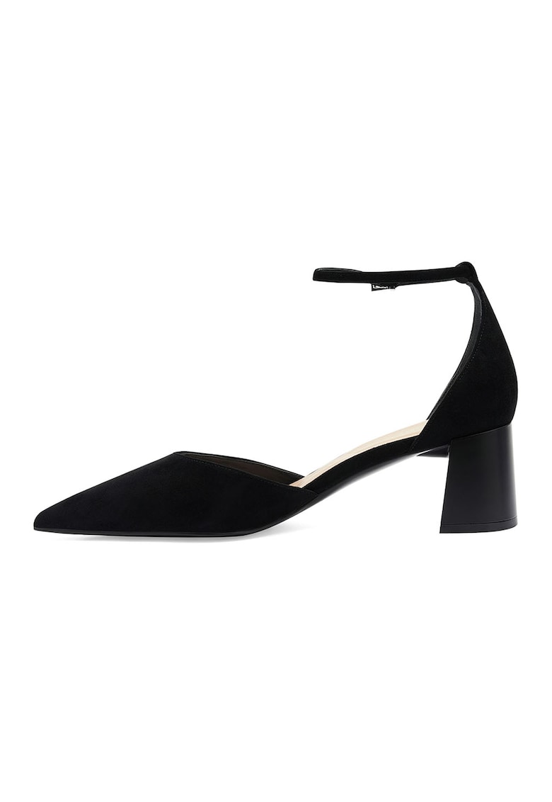 Caracteristici Tip: cu toc Material: piele intoarsa Culoare: negru Imprimeu: uni Stil: elegant Varf: ascutit Tip toc: masiv Detalii: bareta ajustabila pe glezna