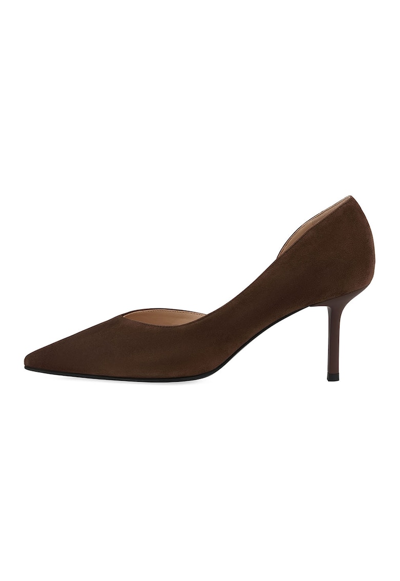 Caracteristici Tip: cu toc Material: piele intoarsa Culoare: maro inchis Imprimeu: uni Stil: elegant Varf: ascutit Tip toc: stiletto Sistem inchidere: fara inchidere Compozitie Partea superioara: piele intoarsa Material interior: textil Material talpa: alte materiale Dimensiuni Inaltime toc: 7 cm