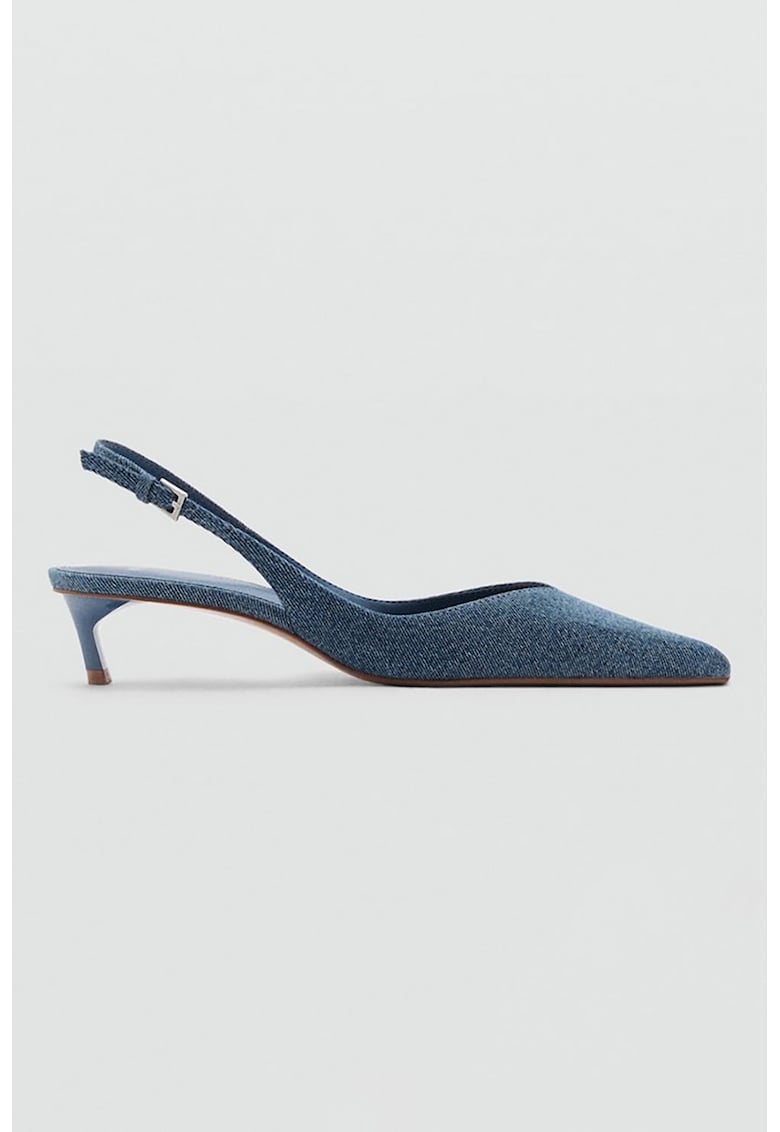 Caracteristici Tip: cu toc Material: bumbac Culoare: albastru melange Imprimeu: uni Stil: elegant Varf: ascutit Tip toc: kitten Sistem inchidere: catarama Compozitie Partea superioara: material textil Material interior: alte materiale Material talpa: alte materiale