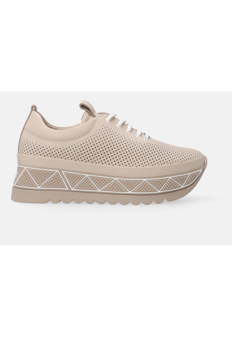 Caracteristici Culoare: bej Imprimeu: uni Tip talpa: flatform Material: piele naturala Stil: casual Sistem inchidere: siret Compozitie Partea superioara: piele Material interior: piele Material talpa: 100% sintetic Dimensiuni Platforma fata: 3 cm Platforma spate: 4 cm