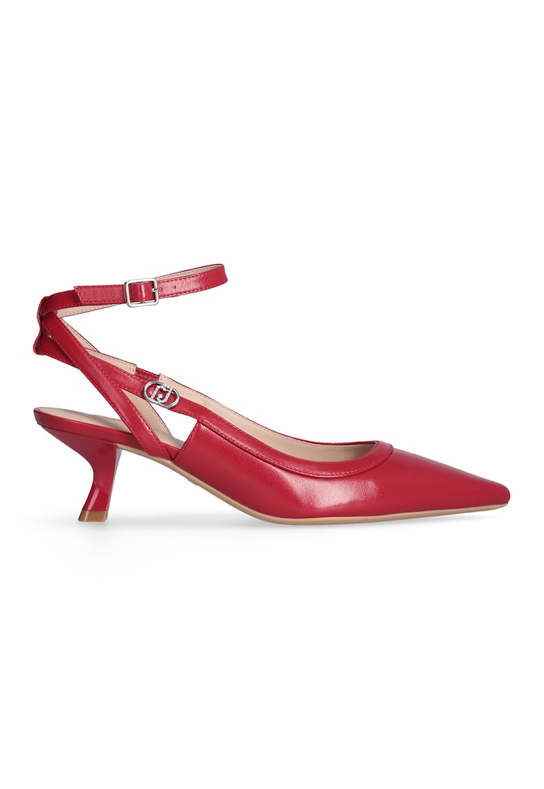 Caracteristici Tip: cu toc Material: piele naturala Culoare: rosu Imprimeu: uni Stil: elegant Varf: ascutit Tip toc: kitten Tip talpa: plata Sistem inchidere: catarama Compozitie Partea superioara: piele Material interior: textil Material talpa: alte materiale