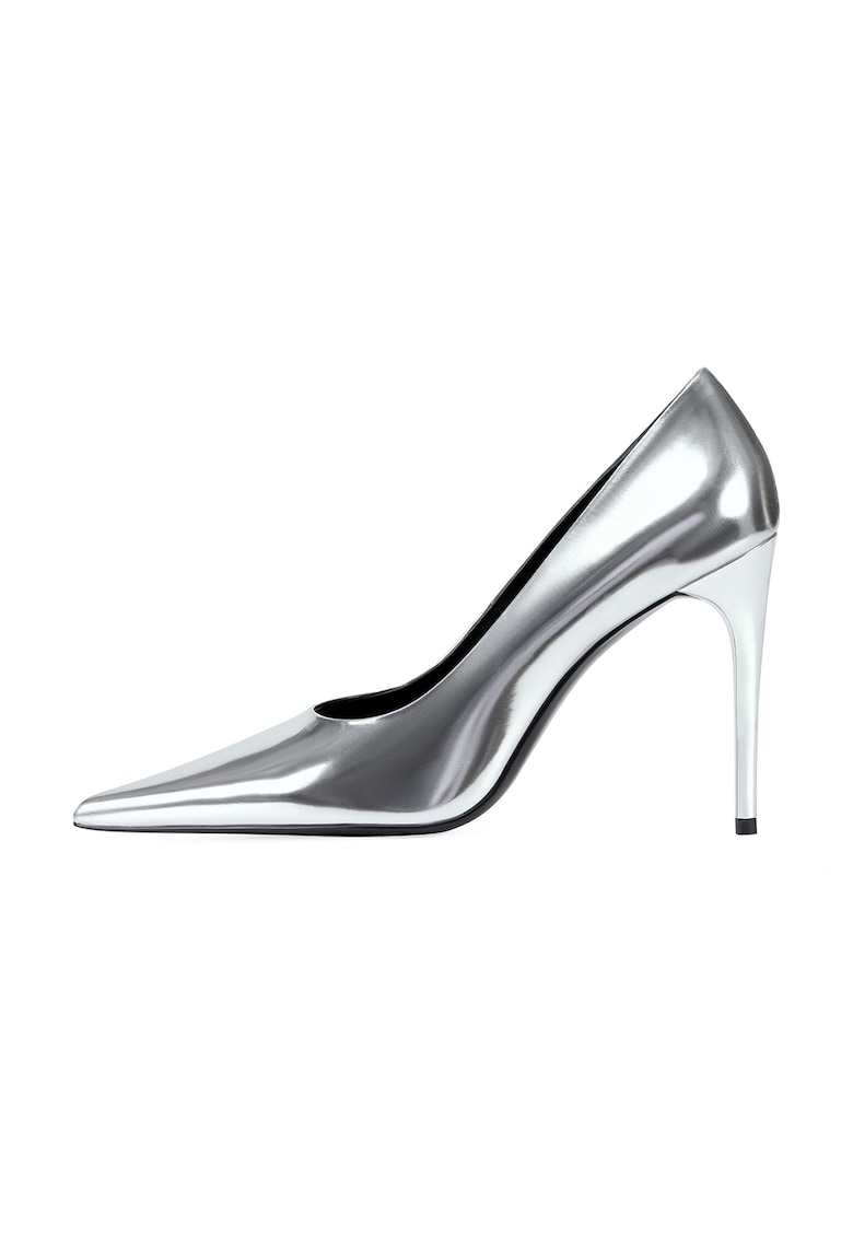 Caracteristici Tip: cu toc Material: piele naturala Culoare: argintiu Imprimeu: uni Stil: casual Varf: ascutit Tip toc: stiletto Sistem inchidere: fara inchidere Compozitie Partea superioara: piele Material interior: piele Material talpa: alte materiale Dimensiuni Inaltime toc: 10 cm
