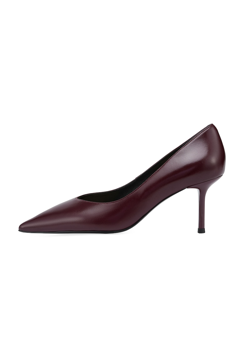 Caracteristici Tip: cu toc Material: piele naturala Culoare: visiniu Imprimeu: uni Stil: casual Varf: ascutit Tip toc: clasic Sistem inchidere: fara inchidere Compozitie Partea superioara: piele Material interior: piele Material talpa: alte materiale Dimensiuni Inaltime toc: 7 cm
