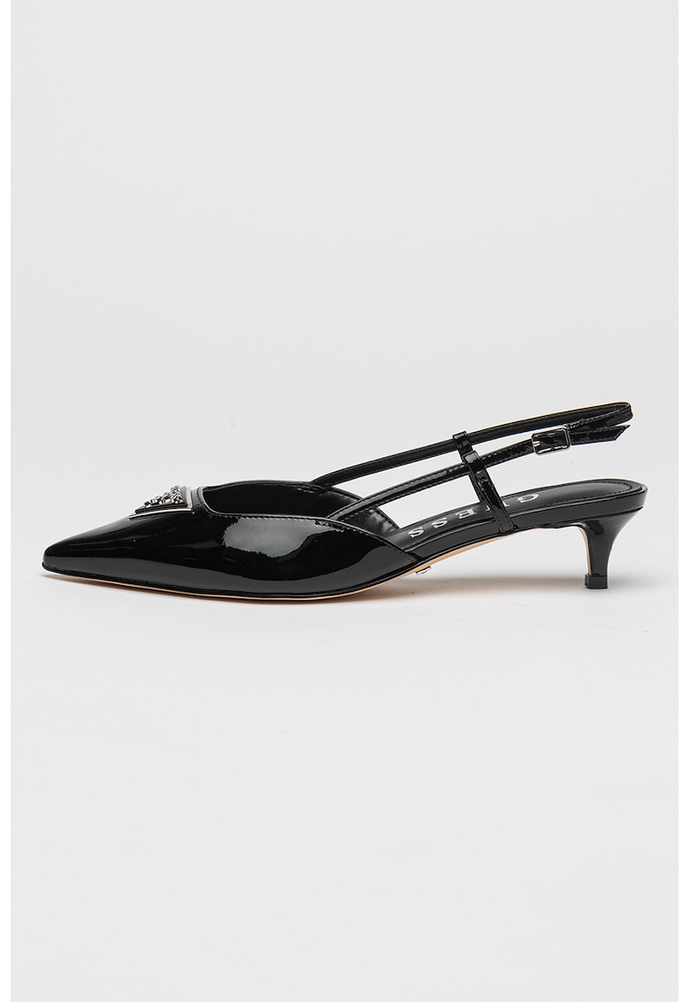 Caracteristici Tip: cu toc Material: piele ecologica Culoare: negru Imprimeu: uni Stil: casual Varf: ascutit Tip toc: kitten Sistem inchidere: catarama Compozitie Partea superioara: alte materiale Material interior: piele Material talpa: alte materiale