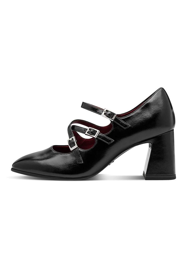 Caracteristici Tip: cu toc Material: piele ecologica Culoare: negru Imprimeu: uni Stil: casual Varf: patrat Tip toc: masiv Sistem inchidere: catarama Compozitie Partea superioara: material sintetic Material interior: sintetic