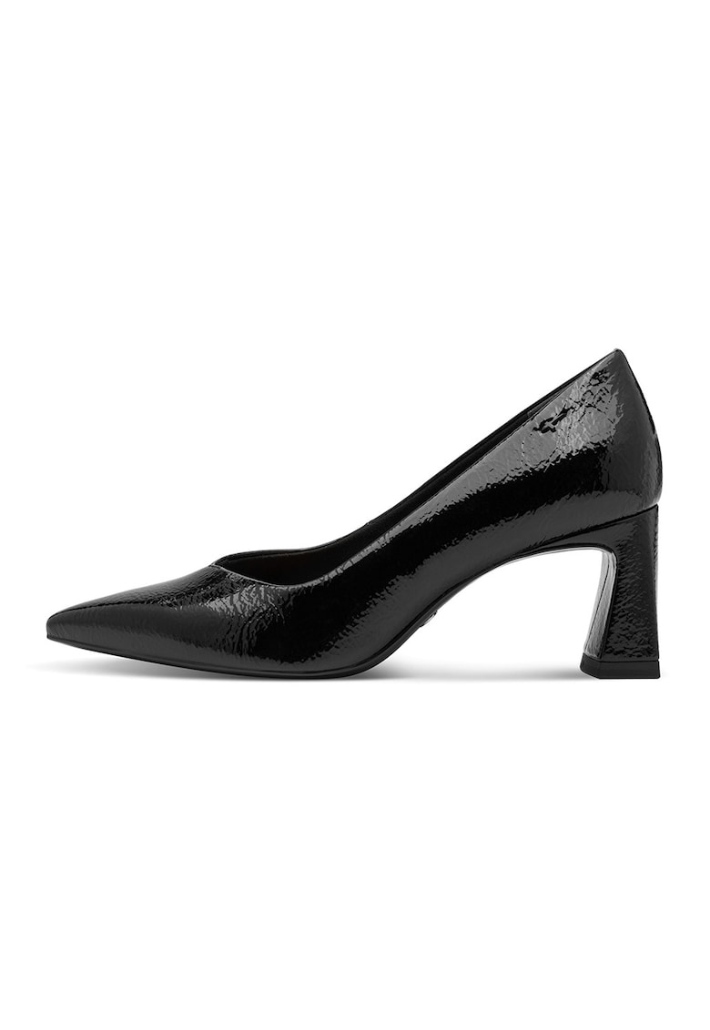 Caracteristici Tip: cu toc Material: piele ecologica Culoare: negru Imprimeu: uni Stil: elegant Varf: ascutit Tip toc: masiv Detalii: aspect lacuit Sistem inchidere: fara inchidere Compozitie Partea superioara: alte materiale Material interior: alte materiale