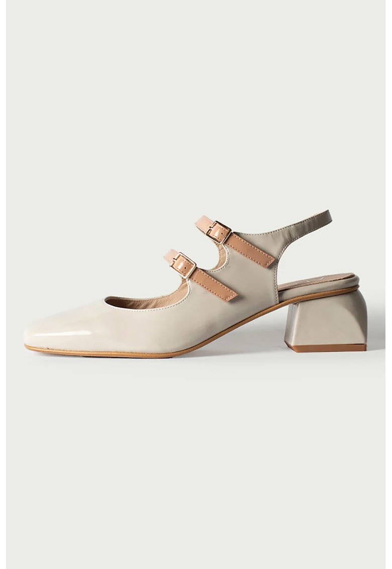 Caracteristici Tip: cu toc Material: piele naturala Culoare: bej Imprimeu: uni Stil: elegant Varf: patrat Tip toc: masiv Sistem inchidere: catarama Compozitie Partea superioara: piele Material interior: piele Material talpa: alte materiale Dimensiuni Inaltime toc: 4 cm