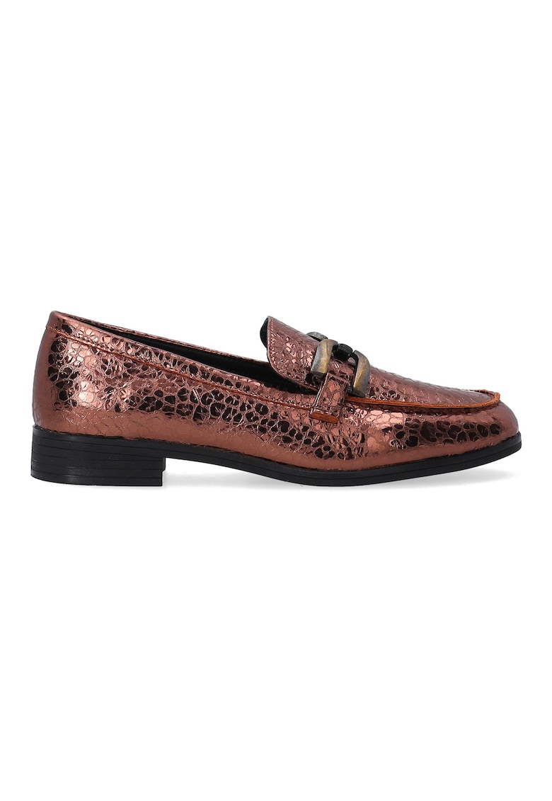 Caracteristici Tip produs: pantofi loafer Culoare: aramiu Material: piele naturala Imprimeu: uni Stil: casual Varf: rotund Tip toc: masiv Tip talpa: plata Detalii: aspect metalizat Sistem inchidere: fara inchidere Compozitie Partea superioara: piele naturala Material interior: piele naturala Material talpa: alte materiale Dimensiuni Inaltime toc: 2.5 cm