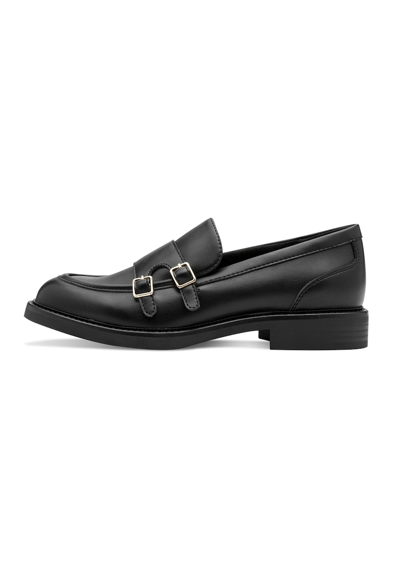 Caracteristici Tip produs: pantofi loafer Culoare: negru Material: piele ecologica Imprimeu: uni Stil: casual Varf: rotund Tip toc: masiv Detalii: catarame decorative Sistem inchidere: fara inchidere Compozitie Partea superioara: alte materiale Material interior: alte materiale