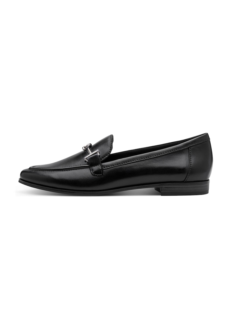 Caracteristici Tip produs: pantofi loafer Culoare: negru Material: piele naturala Imprimeu: uni Stil: casual Varf: rotund Tip toc: masiv Detalii: detaliu metalic Sistem inchidere: fara inchidere Compozitie Partea superioara: piele Material interior: alte materiale