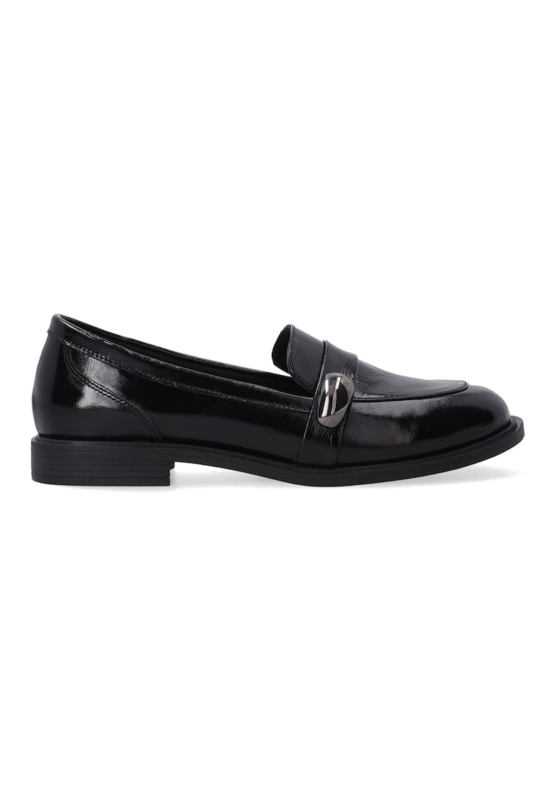 Caracteristici Tip produs: pantofi loafer Culoare: negru Material: piele lacuita Imprimeu: uni Stil: casual Varf: rotund Tip talpa: plata Sistem inchidere: fara inchidere Compozitie Partea superioara: piele lacuita Material interior: piele naturala Material talpa: alte materiale