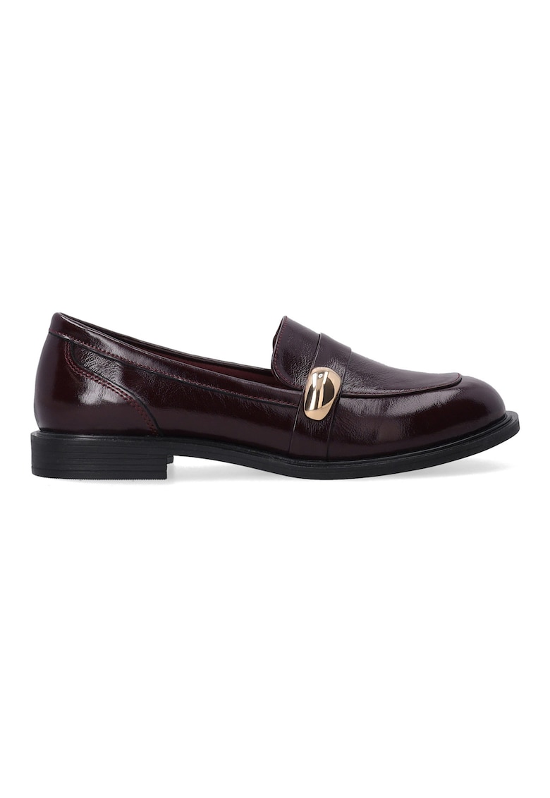 Caracteristici Tip produs: pantofi loafer Culoare: bordeaux Material: piele lacuita Imprimeu: uni Stil: casual Varf: rotund Tip talpa: plata Sistem inchidere: fara inchidere Compozitie Partea superioara: piele lacuita Material interior: piele naturala Material talpa: alte materiale