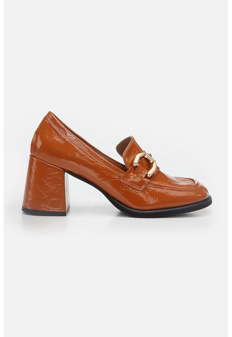 Caracteristici Tip produs: pantofi loafer Culoare: maro scortisoara Material: piele naturala Imprimeu: uni Stil: casual Varf: rotund Tip toc: masiv Sistem inchidere: fara inchidere Compozitie Partea superioara: piele Material interior: piele Material talpa: alte materiale Dimensiuni Inaltime toc: 5 cm