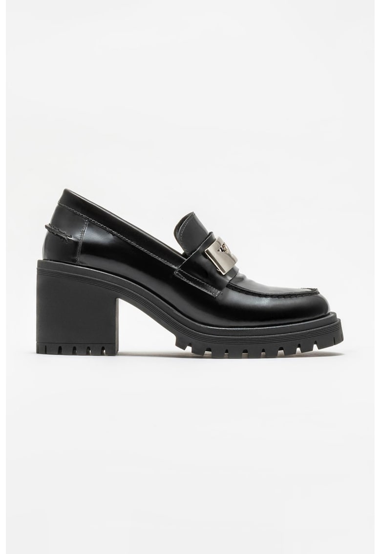 Caracteristici Tip produs: pantofi loafer Culoare: negru Material: piele naturala Imprimeu: uni Stil: casual Varf: rotund Tip toc: masiv Sistem inchidere: fara inchidere Compozitie Partea superioara: piele Material interior: piele Material talpa: alte materiale Dimensiuni Inaltime toc: 7.5 cm