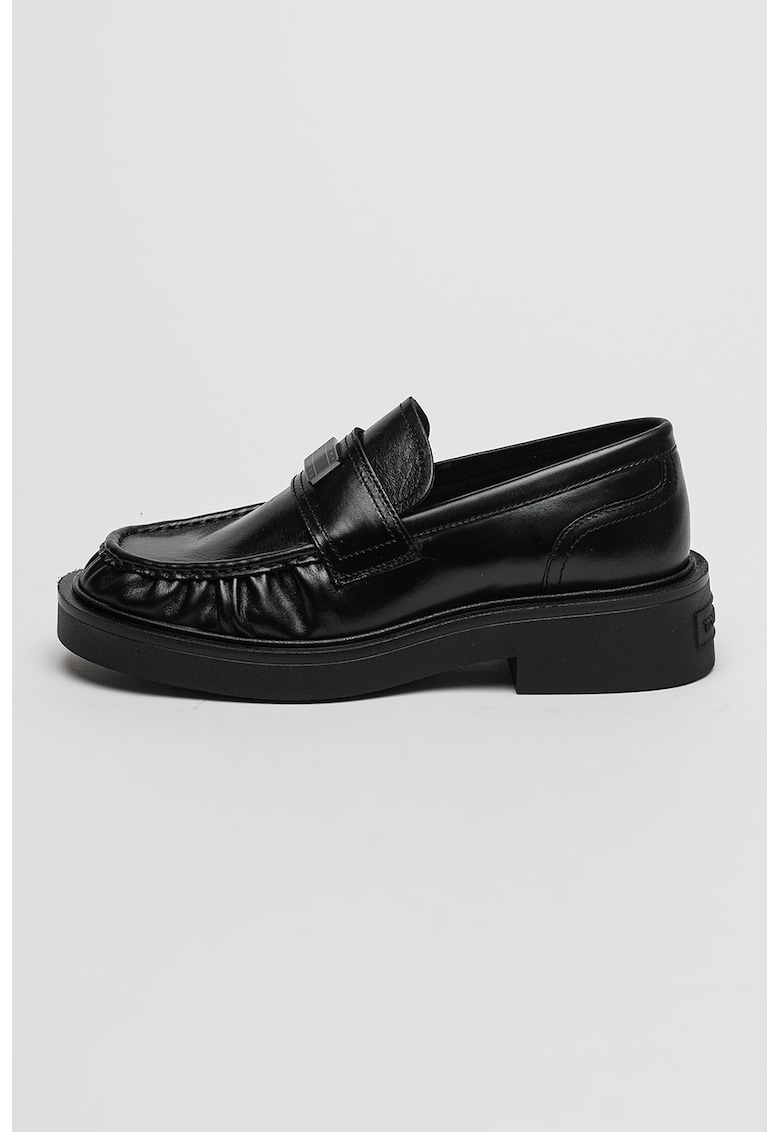 Caracteristici Tip produs: pantofi loafer Culoare: negru Material: piele naturala Imprimeu: uni Stil: casual Varf: rotund Tip toc: masiv Compozitie Partea superioara: piele Material interior: textil