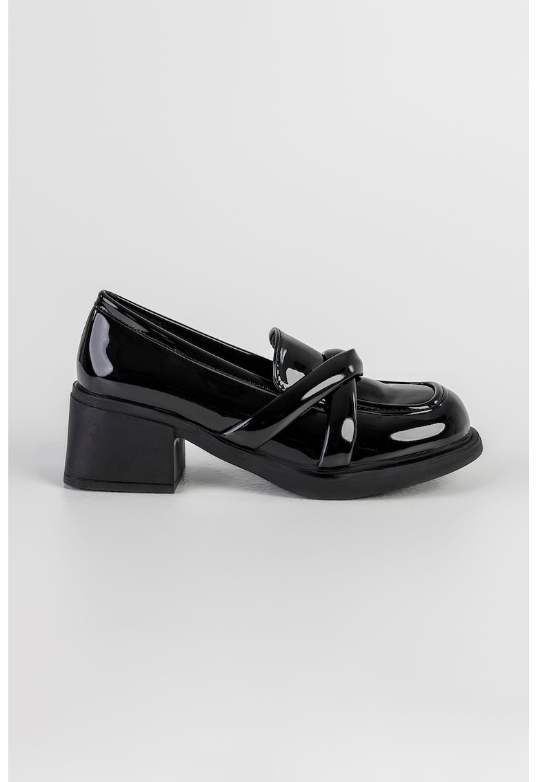 Caracteristici Tip produs: pantofi loafer Culoare: negru Material: piele ecologica Imprimeu: uni Stil: casual Varf: rotund Tip toc: masiv Compozitie Partea superioara: alte materiale Material interior: textil Material talpa: alte materiale Dimensiuni Inaltime toc: 5.5 cm