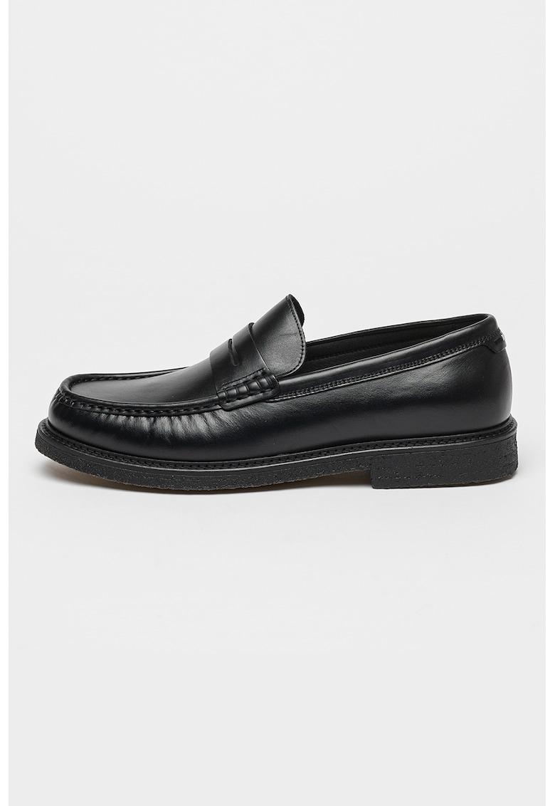 Caracteristici Tip produs: pantofi loafer Culoare: negru Material: piele naturala Imprimeu: uni Stil: casual Varf: rotund Tip talpa: plata Sistem inchidere: fara inchidere Compozitie Partea superioara: piele Material interior: piele Material talpa: alte materiale