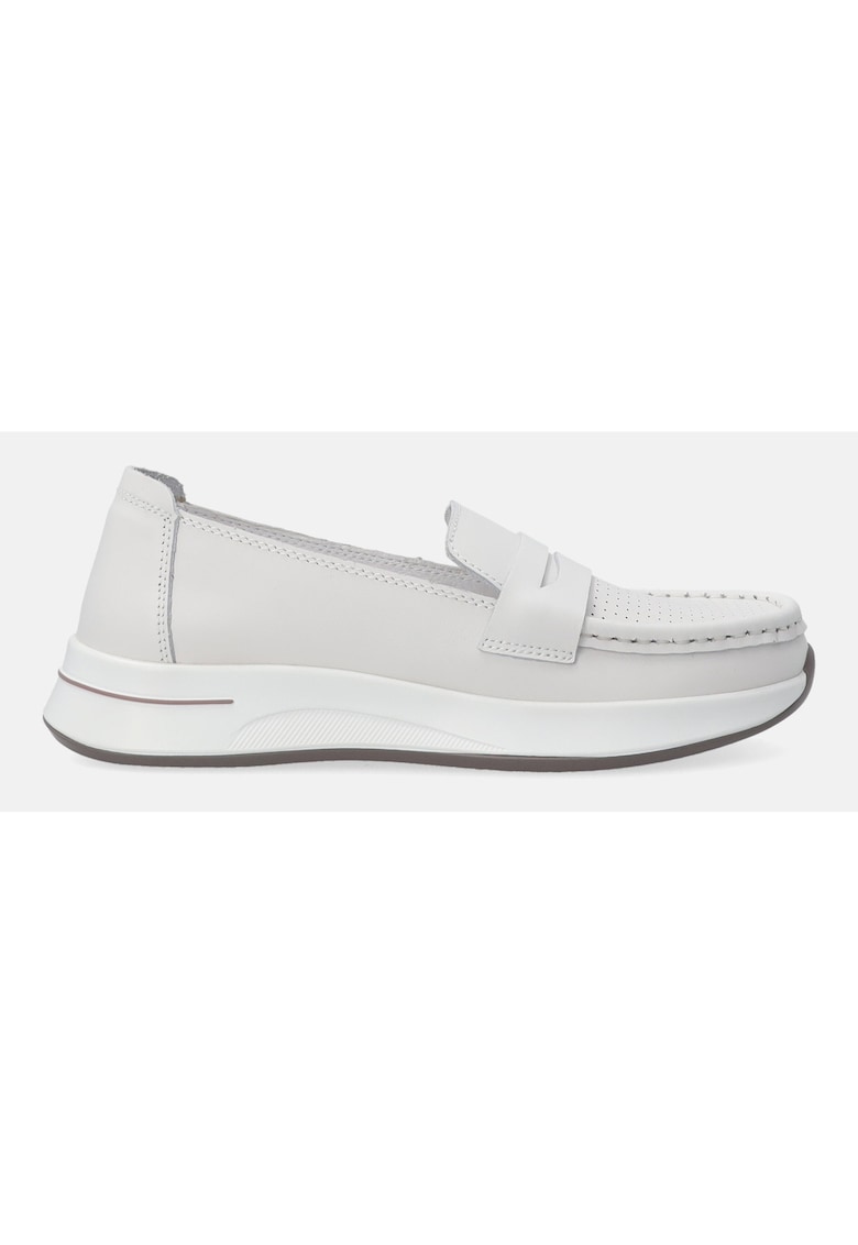 Caracteristici Tip produs: pantofi loafer Culoare: alb Material: piele naturala Imprimeu: uni Stil: casual Varf: rotund Tip talpa: wedge Detalii: perforatii Sistem inchidere: fara inchidere Compozitie Partea superioara: piele Material interior: piele Material talpa: 100% sintetic Dimensiuni Platforma spate: 3 cm