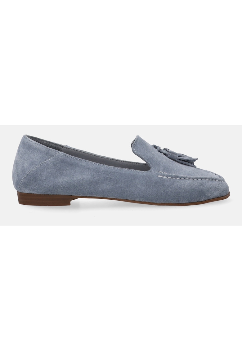 Caracteristici Tip produs: pantofi loafer Culoare: albastru Material: piele intoarsa Imprimeu: uni Stil: casual Varf: rotund Tip toc: masiv Sistem inchidere: fara inchidere Compozitie Partea superioara: piele intoarsa Material interior: piele Material talpa: 100% sintetic Dimensiuni Inaltime toc: 1.5 cm