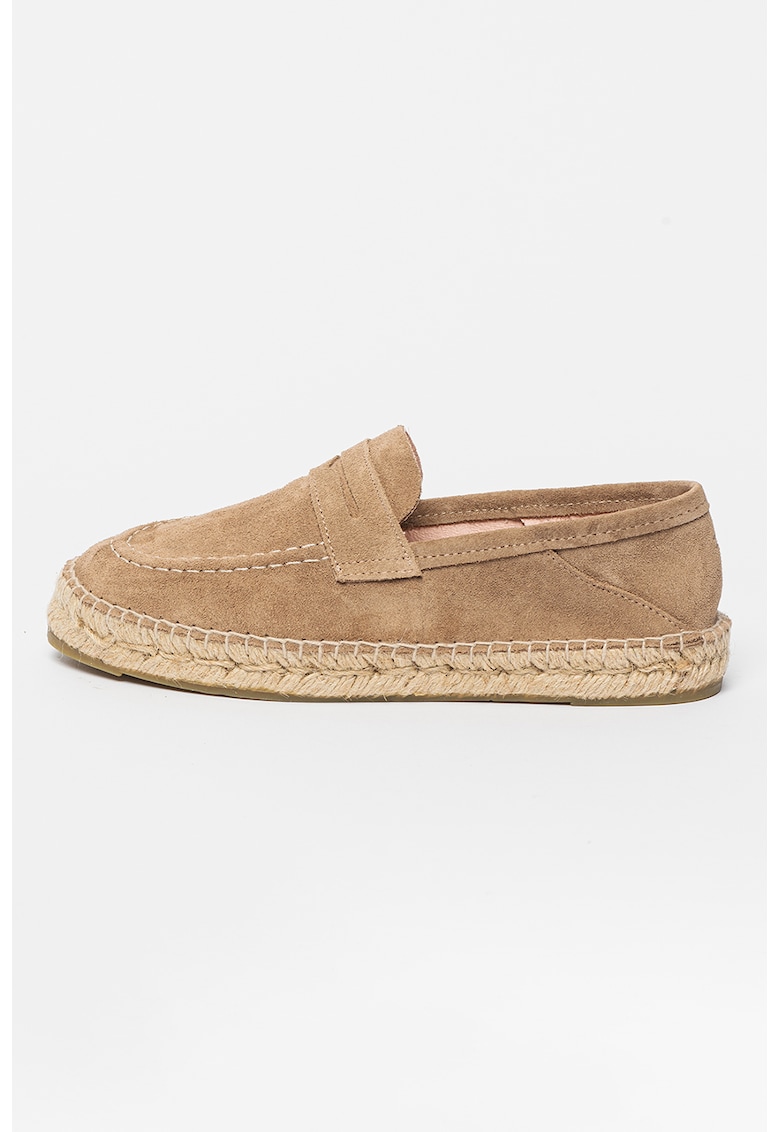 Caracteristici Tip produs: pantofi loafer Culoare: maro taupe Material: piele intoarsa Imprimeu: uni Stil: casual Varf: rotund Tip talpa: plata Sistem inchidere: fara inchidere Compozitie Partea superioara: piele intoarsa Material interior: alte materiale Material talpa: alte materiale