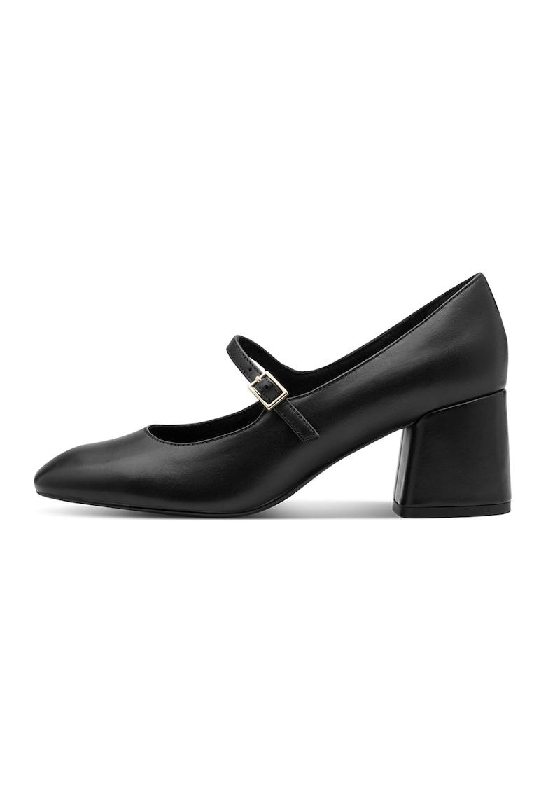 Caracteristici Tip: cu toc Material: piele naturala Culoare: negru Imprimeu: uni Stil: casual Varf: patrat Tip toc: masiv Sistem inchidere: catarama Compozitie Partea superioara: piele Material interior: textil Material talpa: alte materiale Dimensiuni Inaltime toc: 6 cm