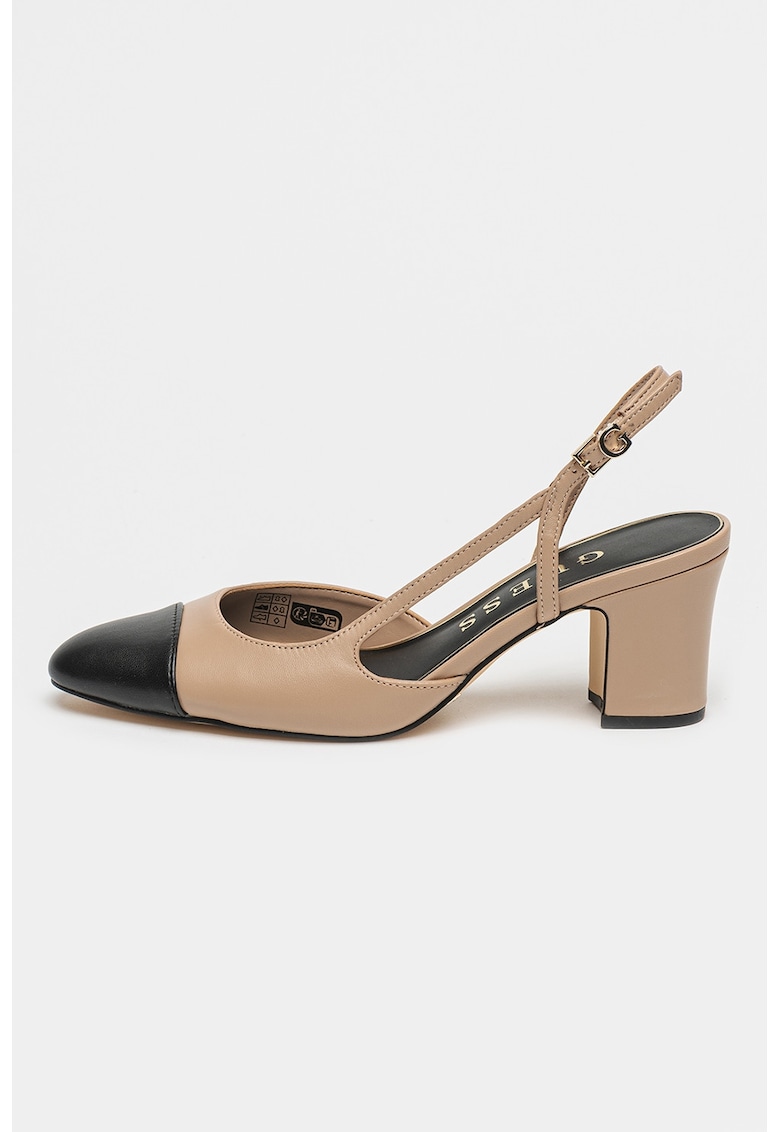 - bej Imprimeu: uni Stil: elegant Varf: alungit Tip toc: masiv Sistem inchidere: catarama Compozitie Partea superioara: piele