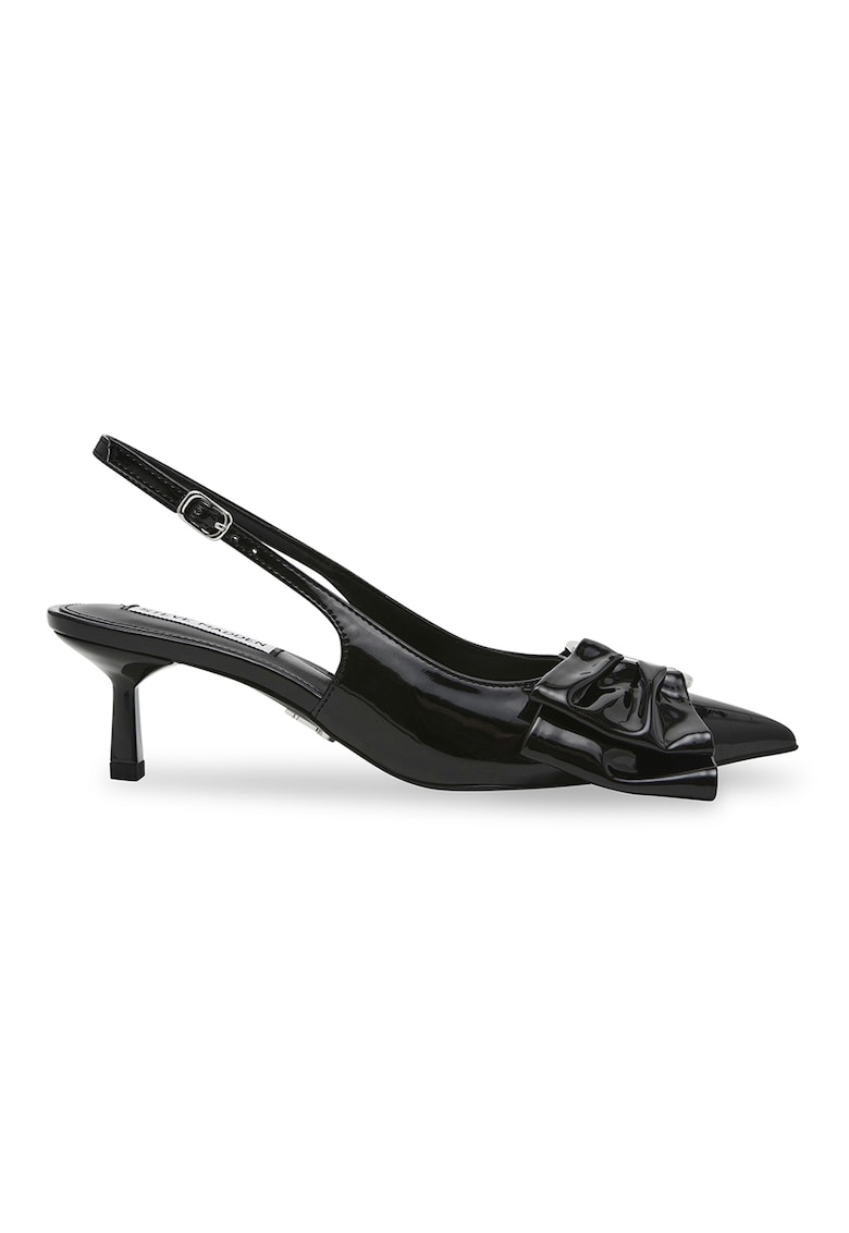 Caracteristici Tip: cu toc Material: sintetic Culoare: negru Imprimeu: uni Stil: elegant Varf: ascutit Tip toc: kitten Detalii: design funda Sistem inchidere: catarama Compozitie Partea superioara: material sintetic Material interior: material sintetic Material talpa: alte materiale Dimensiuni Inaltime toc: 5.5 cm