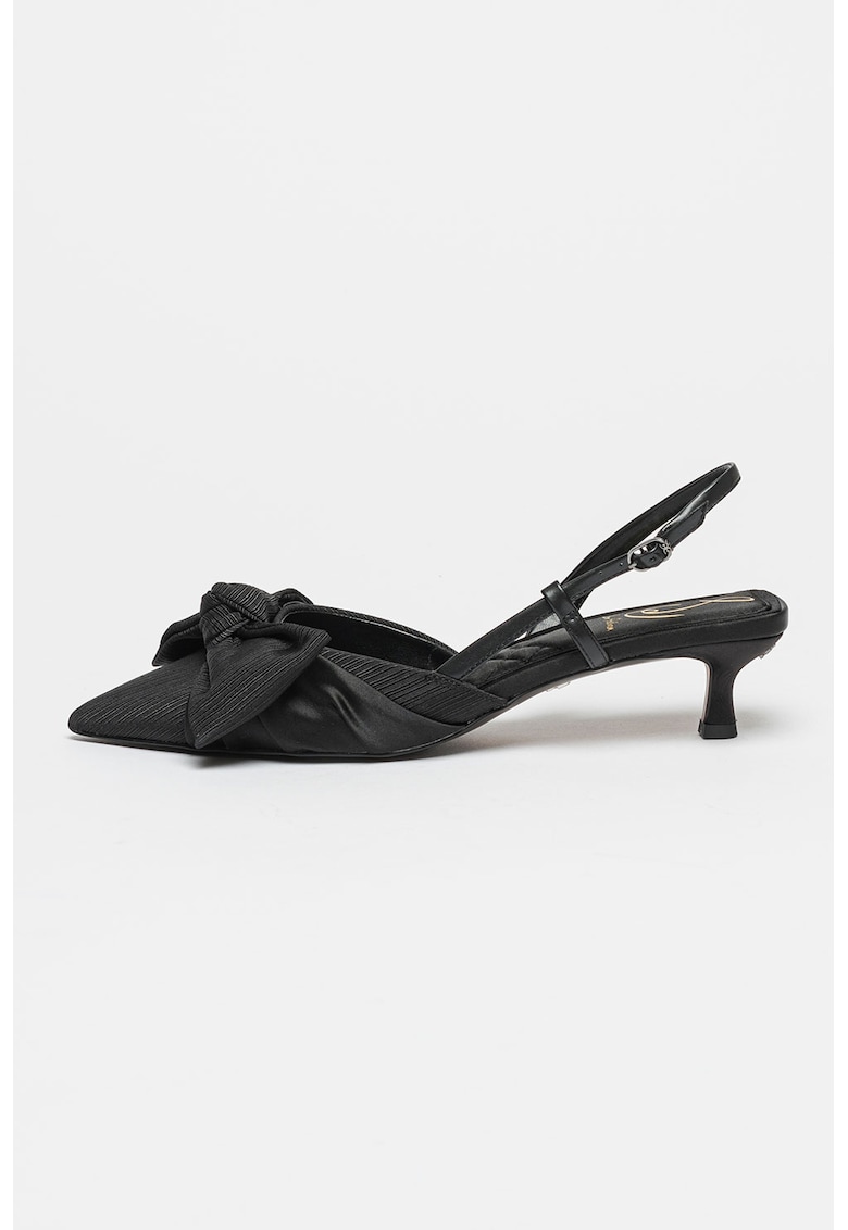 Caracteristici Tip: cu toc Material: textil Culoare: negru Imprimeu: uni Stil: elegant Varf: ascutit Tip toc: kitten Sistem inchidere: catarama Compozitie Partea superioara: material textil Material interior: alte materiale Material talpa: alte materiale Dimensiuni Inaltime toc: 4 cm