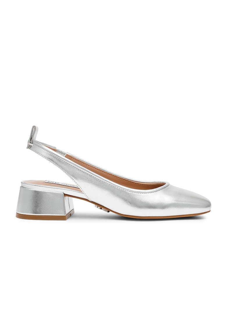 Caracteristici Tip: cu toc Material: piele ecologica Culoare: argintiu Imprimeu: uni Stil: elegant Varf: patrat Tip toc: masiv Sistem inchidere: fara inchidere Compozitie Partea superioara: piele ecologica Material interior: alte materiale Material talpa: alte materiale Dimensiuni Inaltime toc: 4.5 cm
