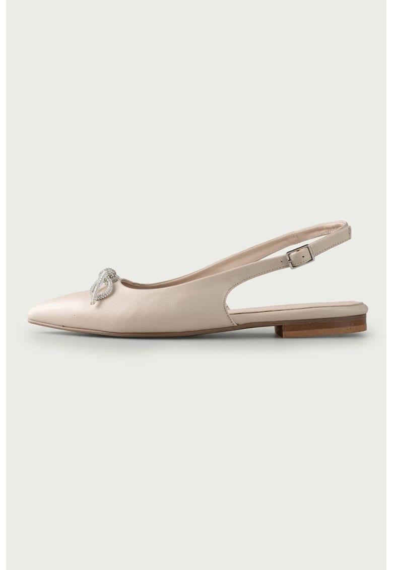 Caracteristici Tip: cu talpa joasa Material: piele naturala Culoare: maro taupe deschis Imprimeu: uni Stil: elegant Varf: ascutit Tip talpa: plata Detalii: accesoriu cu funda Sistem inchidere: catarama Compozitie Partea superioara: piele Material interior: piele Material talpa: alte materiale