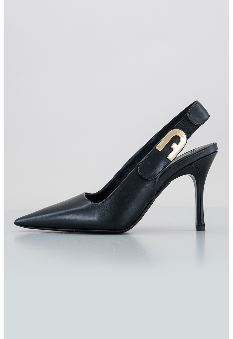 Caracteristici Tip: cu toc Material: piele naturala Culoare: negru Imprimeu: uni Stil: elegant Varf: ascutit Tip toc: stiletto Detalii: banda elastica laterala Compozitie Partea superioara: piele