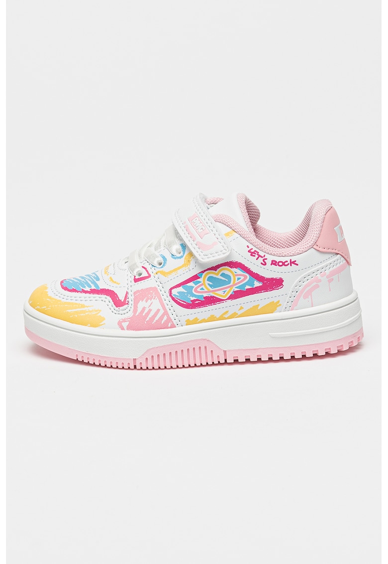 - roz deschis Imprimeu: grafic Stil: casual Material: piele ecologica Sistem inchidere: velcro Tip talpa: plata Compozitie Partea superioara: alte materiale Material interior: textil Material talpa: alte materiale