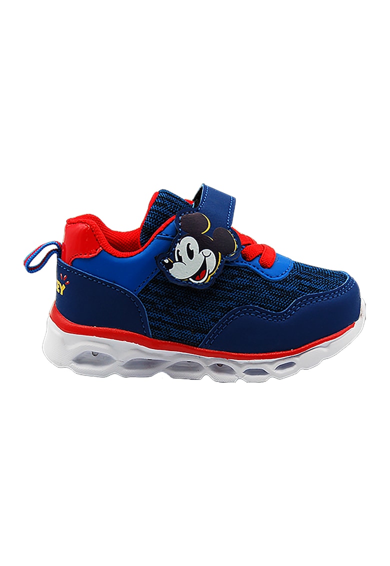 - piele ecologica Sistem inchidere: velcro Tip talpa: plata Detalii: imprimeu cu mickey mouse Compozitie Partea superioara: textil