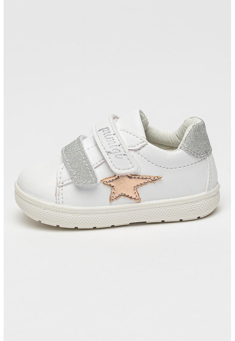 - argintiu Imprimeu: uni Stil: casual Material: piele ecologica Sistem inchidere: velcro Tip talpa: plata Compozitie Partea superioara: alte materiale Material interior: piele Material talpa: alte materiale