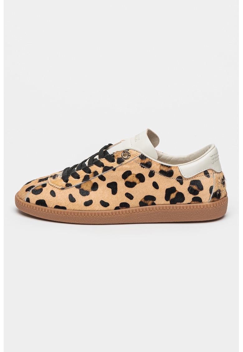 - bej Varf: rotund Imprimeu: cu model Tip talpa: plata Material: piele naturala Stil: casual Sistem inchidere: siret Compozitie Partea superioara: piele cu par scurt Material interior: piele Material talpa: alte materiale