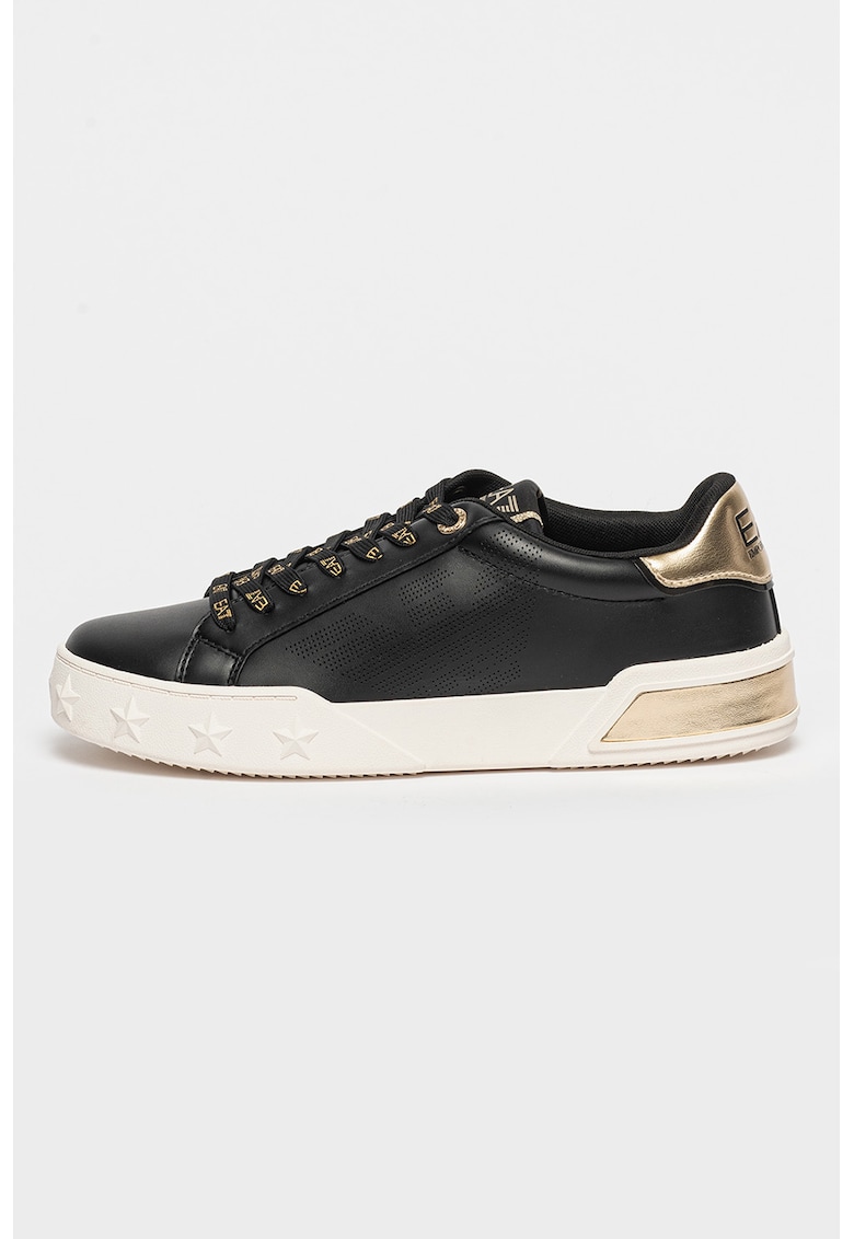 - negru Varf: rotund Imprimeu: cu model Tip talpa: plata Detalii: logo cu perforatii Material: piele ecologica Stil: casual Sistem inchidere: fermoar Compozitie Partea superioara: alte materiale Material interior: alte materiale