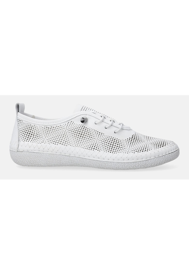 Caracteristici Culoare: alb Varf: rotund Imprimeu: uni Tip talpa: plata Detalii: detalii perforate Material: piele naturala Stil: casual Sistem inchidere: siret Compozitie Partea superioara: piele Material interior: piele Material talpa: 100% sintetic
