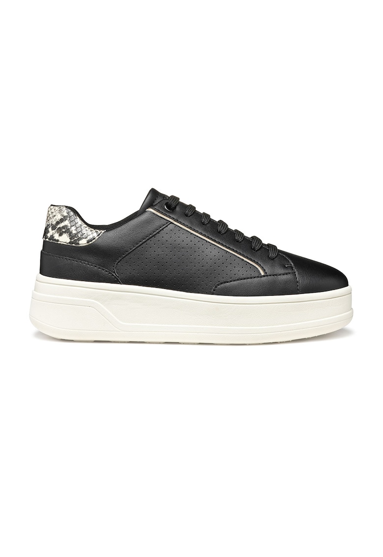 Caracteristici Culoare: negru Varf: rotund Imprimeu: uni Tip talpa: flatform Detalii: design perforat Tehnologie: geox respira® Material: piele ecologica Stil: casual Sistem inchidere: siret Compozitie Partea superioara: piele ecologica Material interior: alte materiale