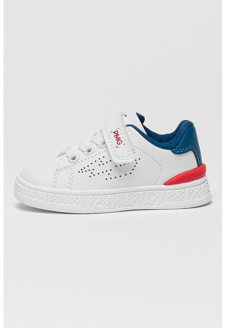 - alb optic Imprimeu: uni Stil: casual Material: piele ecologica Sistem inchidere: velcro Tip talpa: plata Detalii: detalii cu aspect metalizat Compozitie Partea superioara: alte materiale Material interior: textil Material talpa: alte materiale