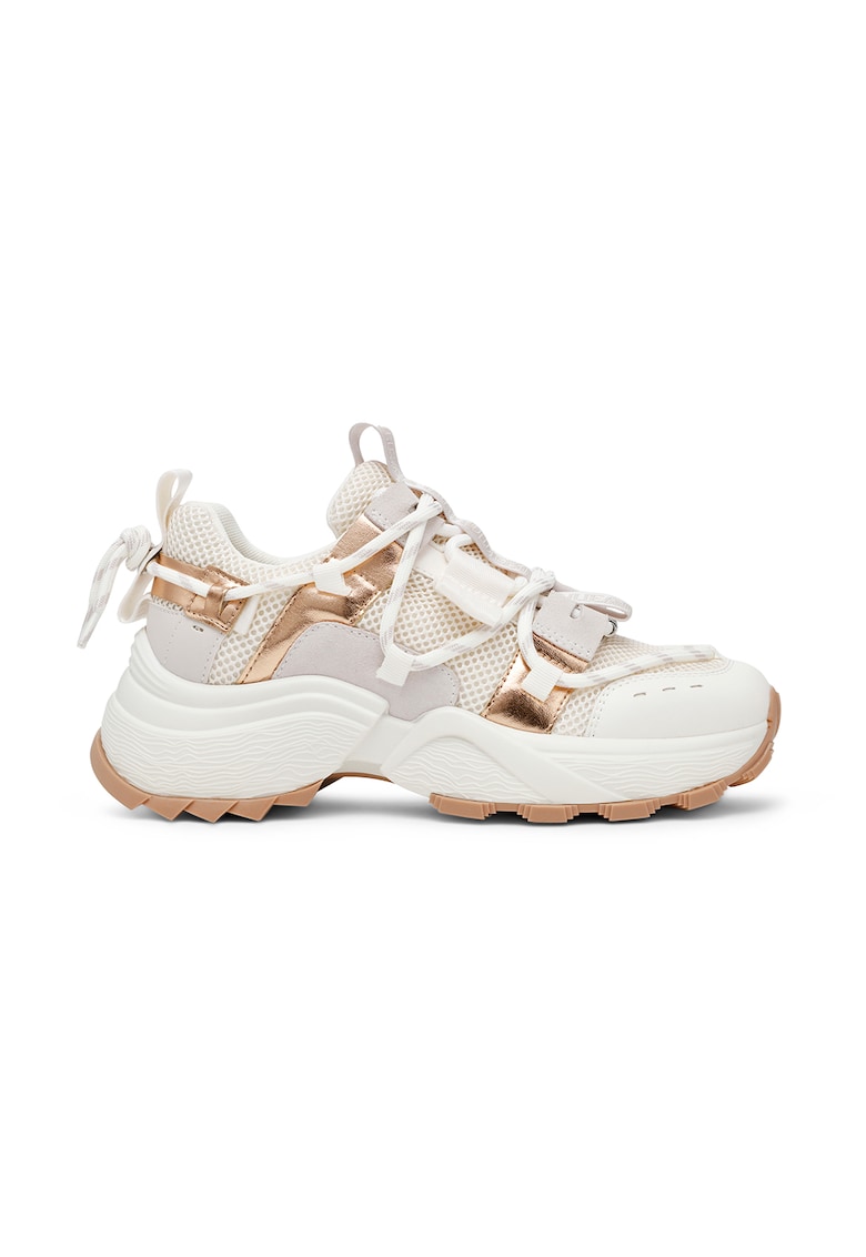 - alb fildes Varf: rotund Imprimeu: logo Tip talpa: flatform Material: piele ecologica