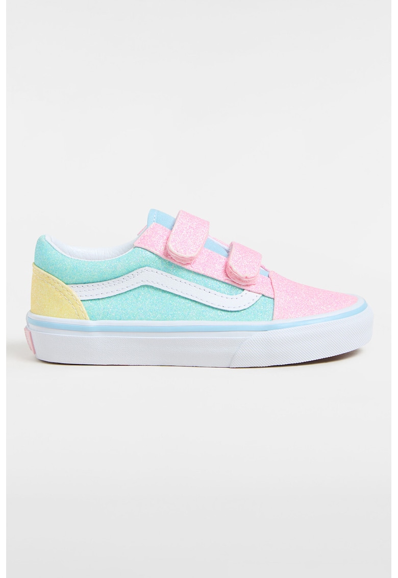 - albastru glaciar Imprimeu: uni Stil: casual Material: piele ecologica Sistem inchidere: velcro Tip talpa: plata Detalii: aspect stralucitor