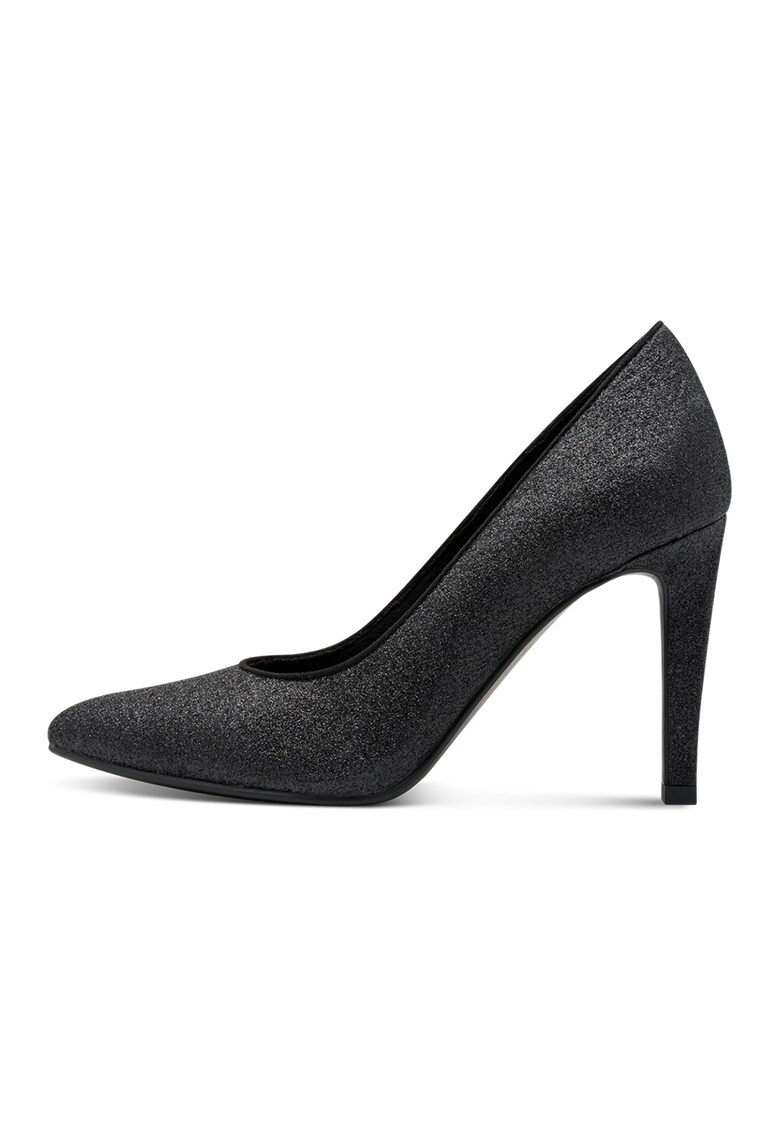 - sintetic Culoare: negru Imprimeu: uni Stil: elegant Varf: ascutit Tip toc: stiletto Detalii: aspect stralucitor Sistem inchidere: fara inchidere Compozitie Partea superioara: textil
