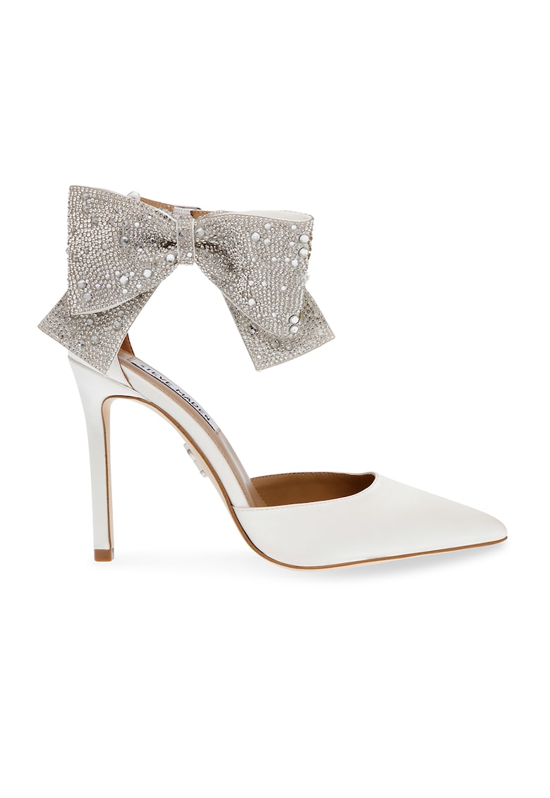 Caracteristici Tip: cu toc Material: sintetic Culoare: alb Imprimeu: uni Stil: elegant Varf: ascutit Tip toc: stiletto Detalii: strasuri Sistem inchidere: catarama Compozitie Partea superioara: alte materiale Material interior: alte materiale Material talpa: alte materiale Dimensiuni Inaltime toc: 10 cm